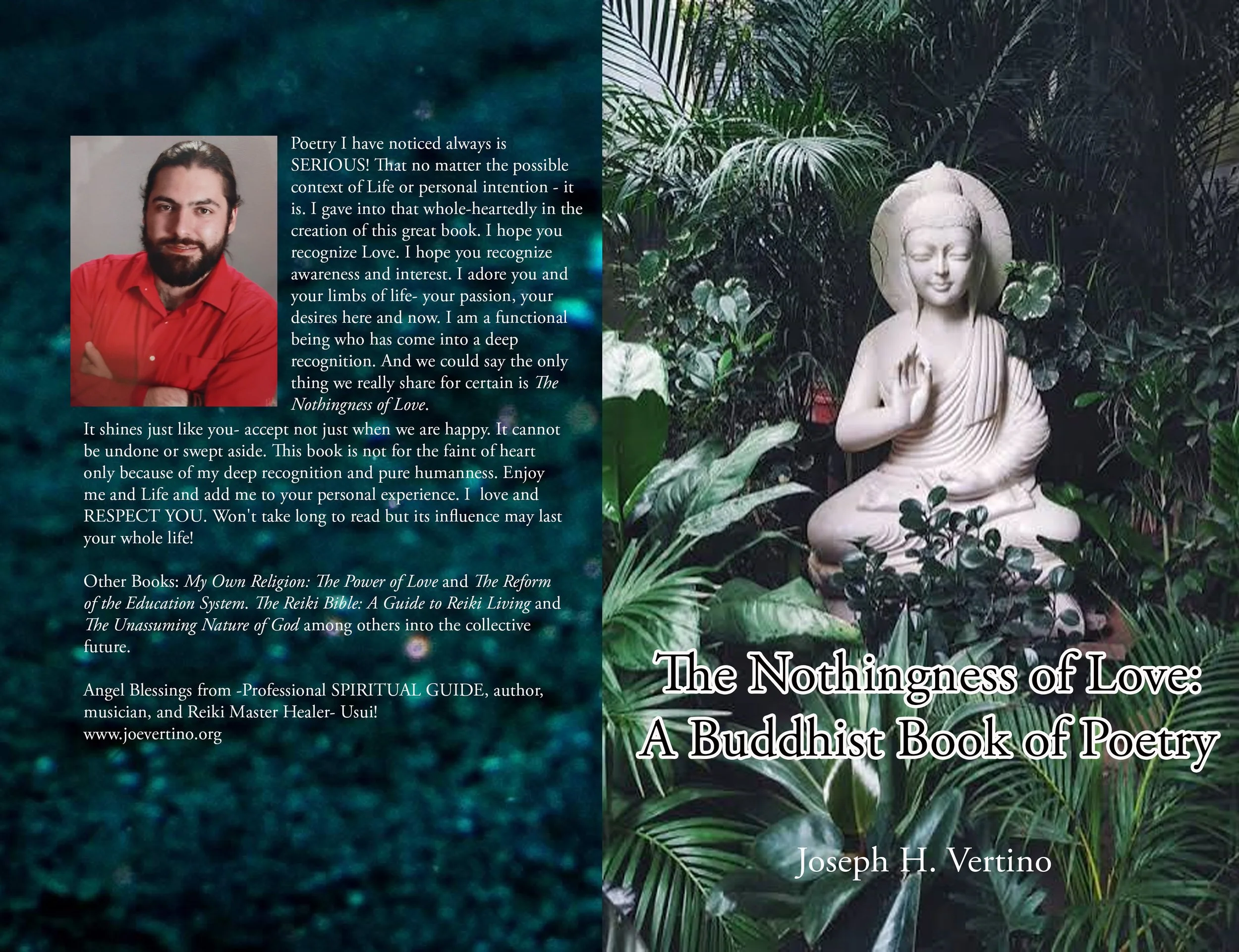 This books contents are very good for the soul, even if you currently do not believe, so to speak, in this lifetime. I have been an atheist for two years before. I was born into a Lutheran religious family. And then went to a catholic high school all in one town! I am still here for now. I love using my expressive and powerful soul to conduct and create these books. I am Buddhist, and I fully understand what that means! Being an educator and not a monk in context I am obviously willing to teach throughout this world. Poetry is a specific kind of self expression. I have nothingness of Love... I have the joy joy joy.. away in my soul. I love you no matter what- It is Tue. But you you already know you gotta do your dharma in this very life. Aum! I have other books, videos, music, spiritual education and healing works..